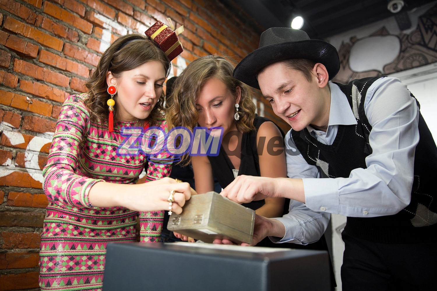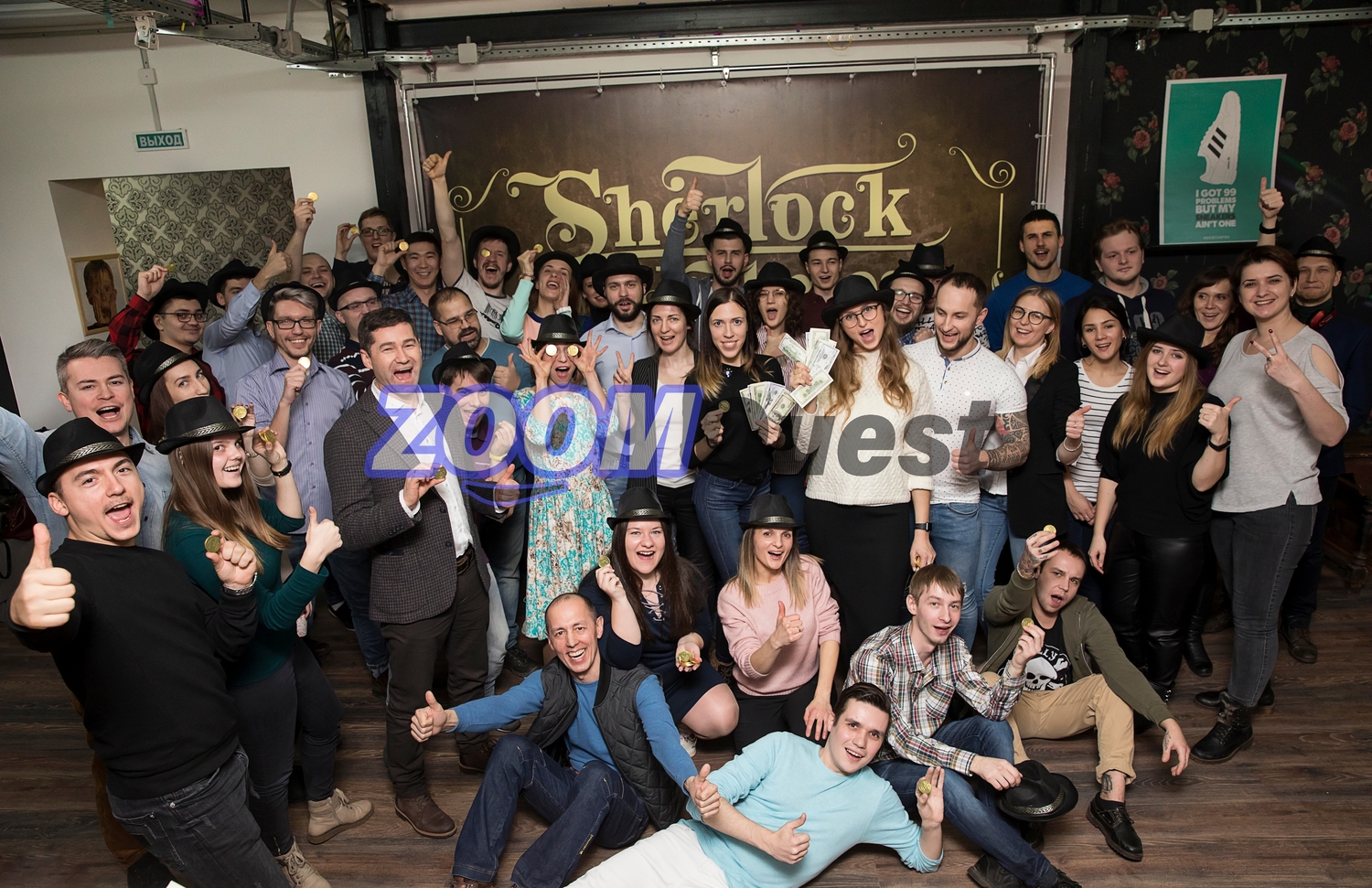 Костюмированные ведущие собирают гостей, рассказывают легенду квеста и делят участников на команды.